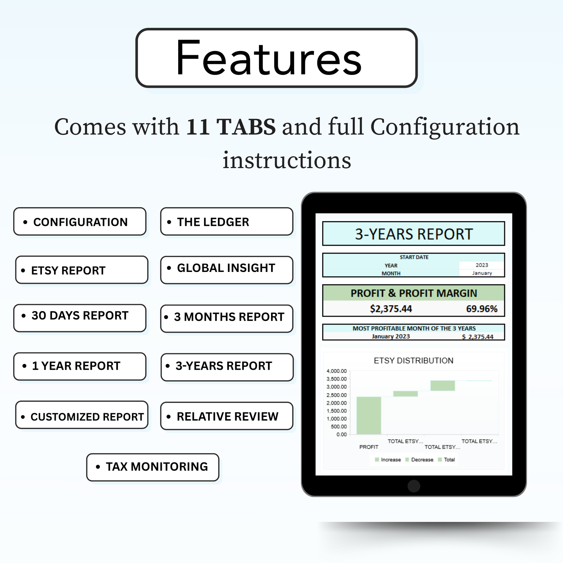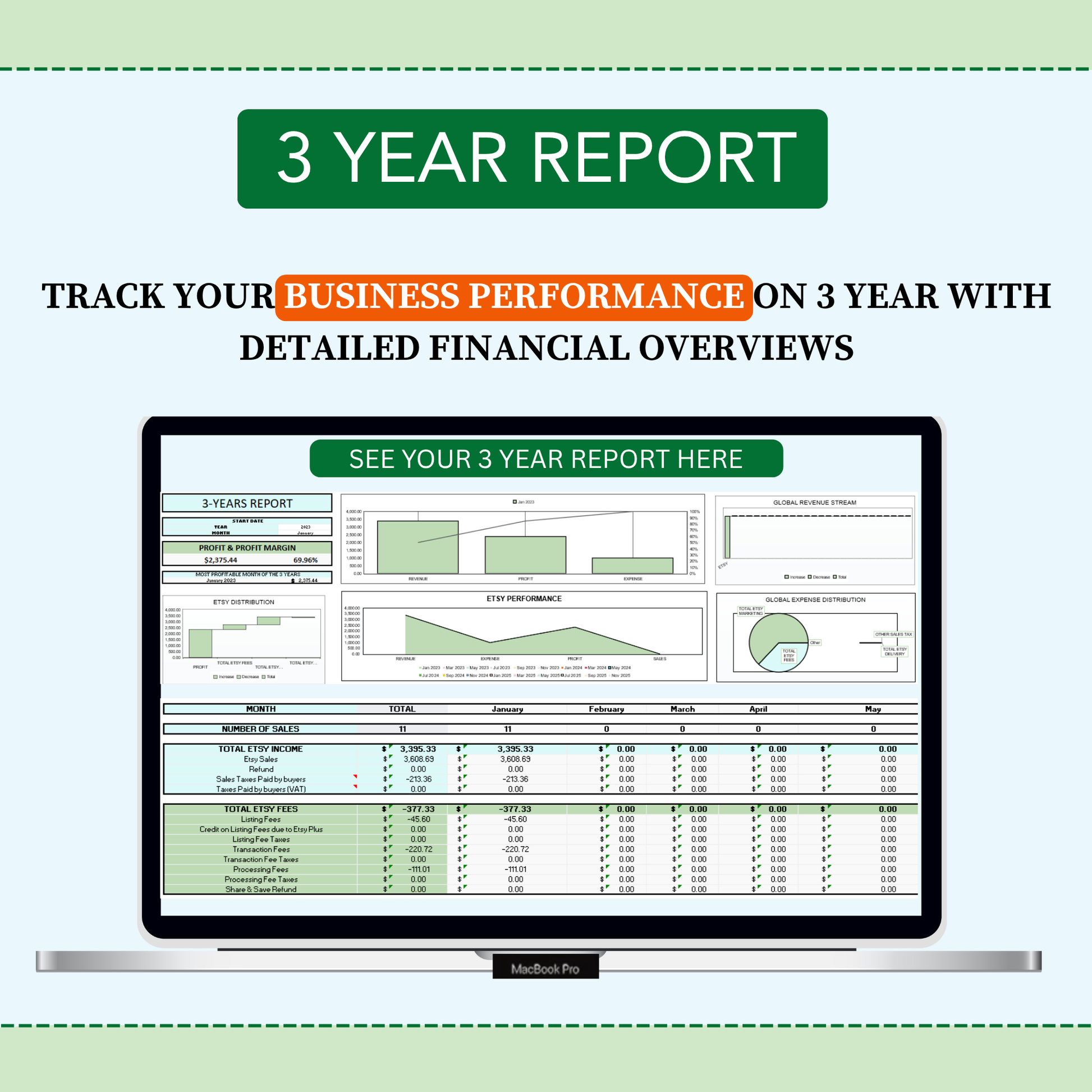 Effortlessly manage your business finances using our comprehensive bookkeeping spreadsheet. Monitor income, expenses, and profits over multiple years — complete with automated charts and summaries to give you a clear snapshot of business performance. Easily customize categories, compare different time periods, and keep focused on your financial goals. Whether you're tracking daily sales or analyzing annual trends, this tool saves time and ensures accuracy — especially useful for Etsy sellers.