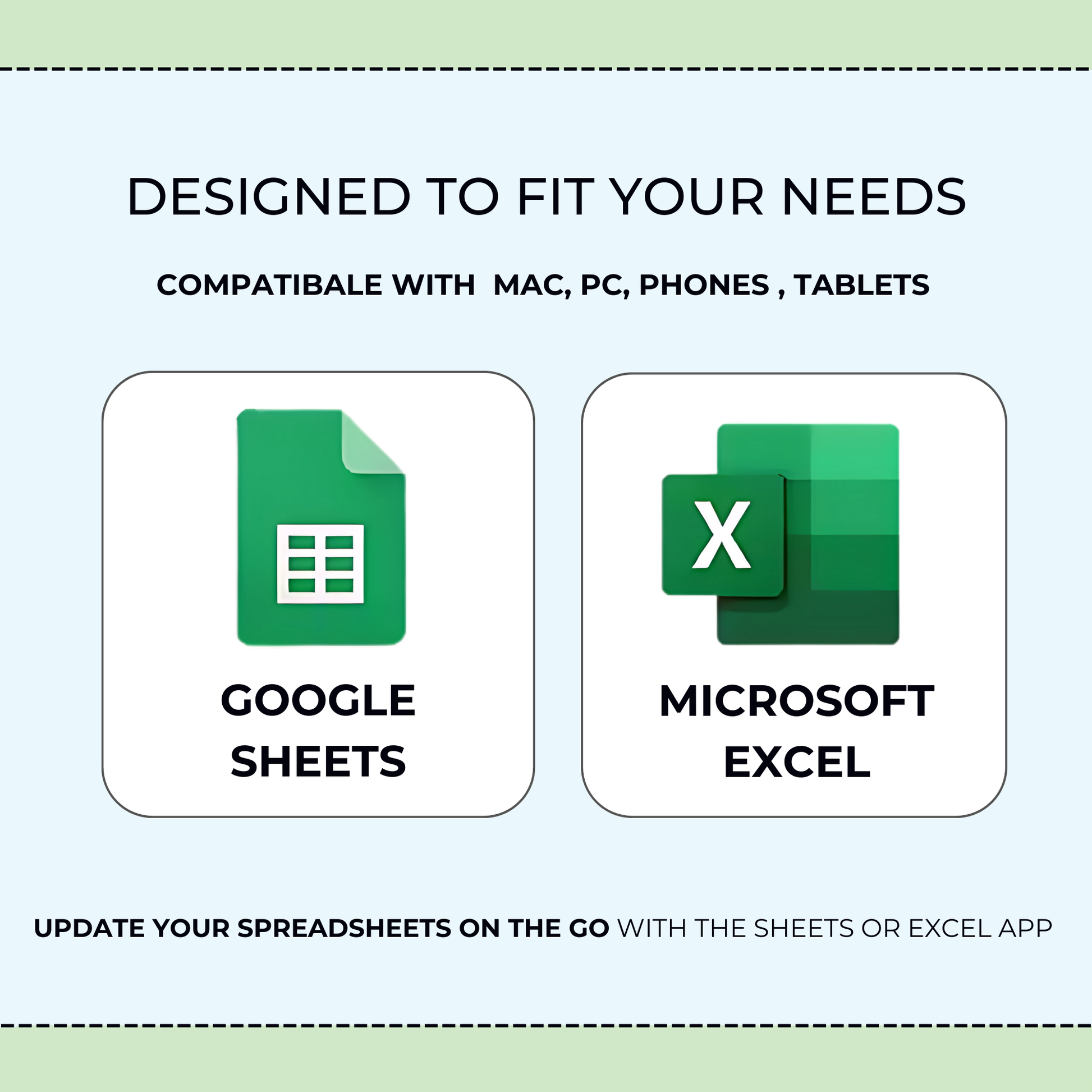 • Fully editable in Google Sheets and Microsoft Excel